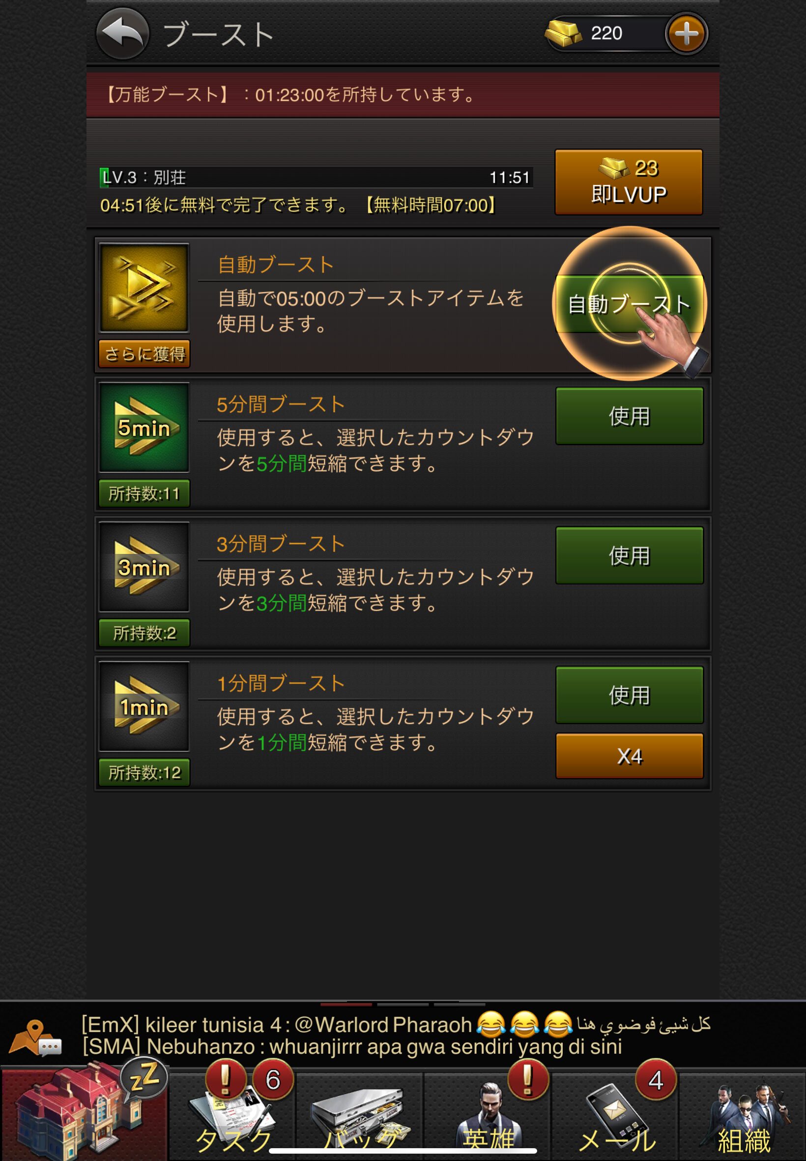 序盤は報酬でもらえるスピードアップアイテムがたくさんあります。