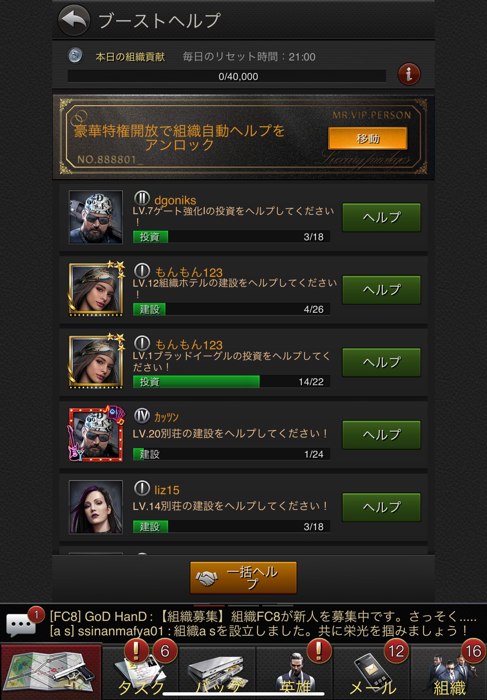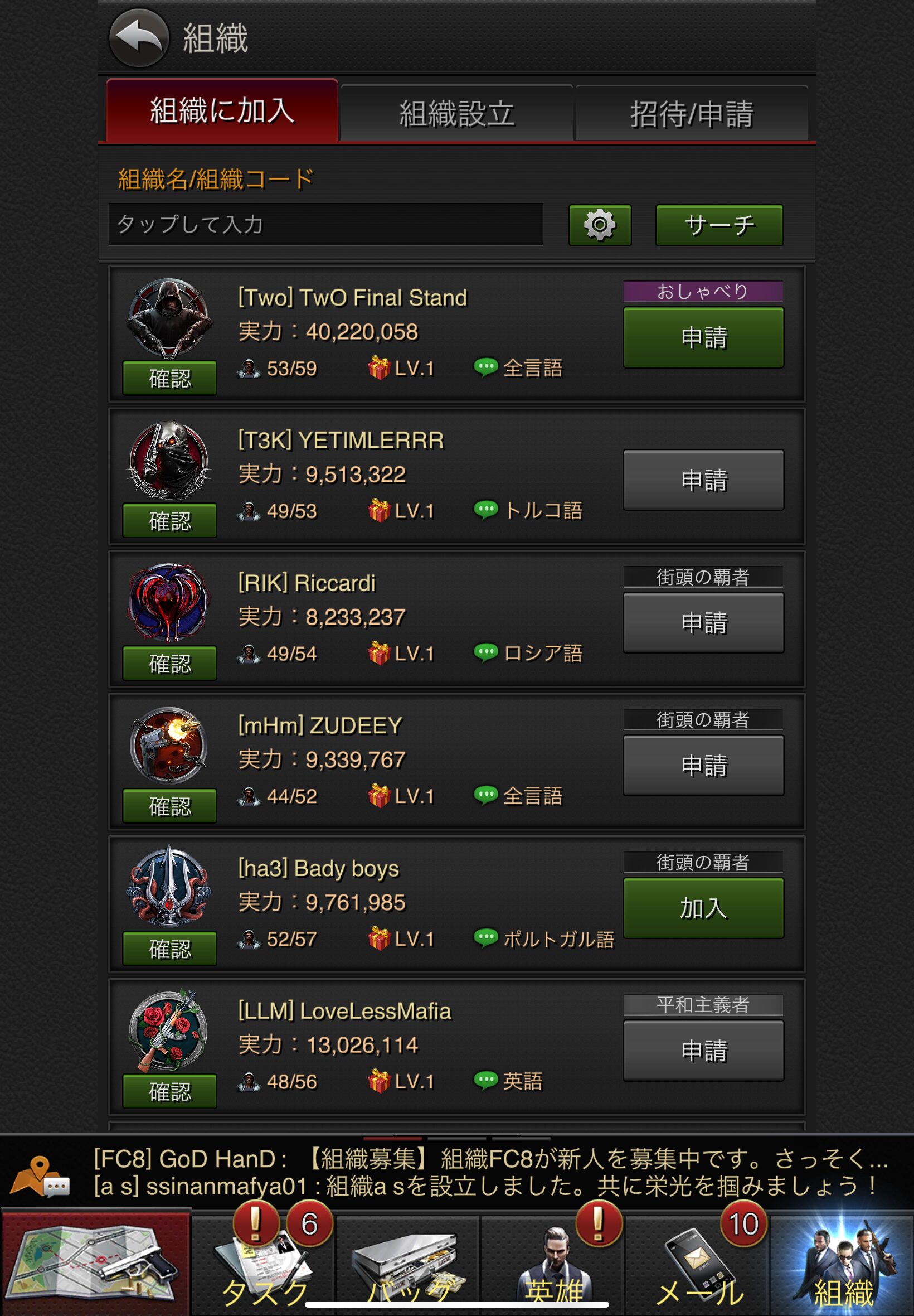 レベルが上がって組織加入が解放されたら、すぐに加入することをおすすめします♪